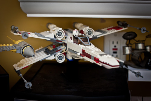 - X-wing starfighter features retractable landing gear, 2 proton torpedoes, opening cockpit and wings that fold into attack mode