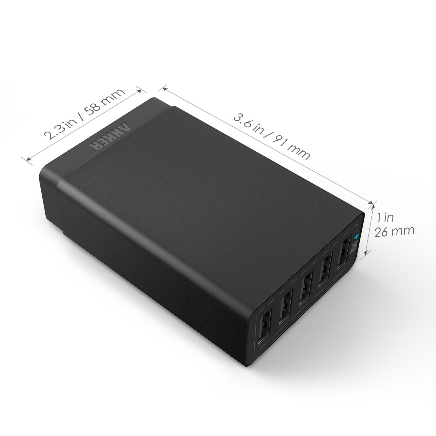 - Package contents: Anker® 40W 5-Port Wall Charger, 5ft / 150cm detachable power cord, user manual, 18-month hassle-free warranty